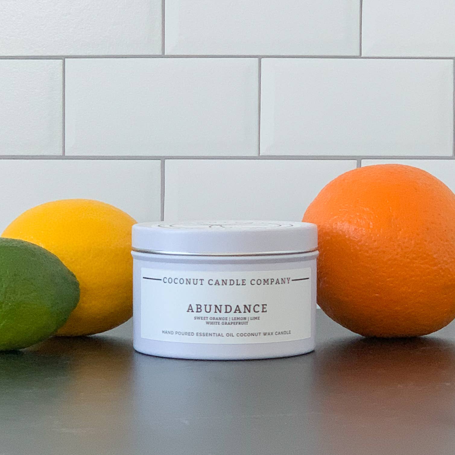 Cleanse and rejuvenate your spirit with our Abundance essential oil candle! Allow the uplifting citrus fragrance of sweet oranges, juicy lemons, fresh limes, and white grapefruit eliminate negativity and restore positive and happy energy in any space. . Hand poured in small batches in New Westminster, Canada. All our candles use premium coconut wax with crackling cedar wood wicks and are paraffin and lead free.