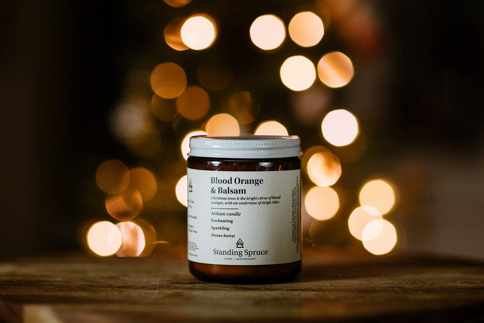 Cotton Wick, essential oil of blood orange, cinnamon, and balsam fir.