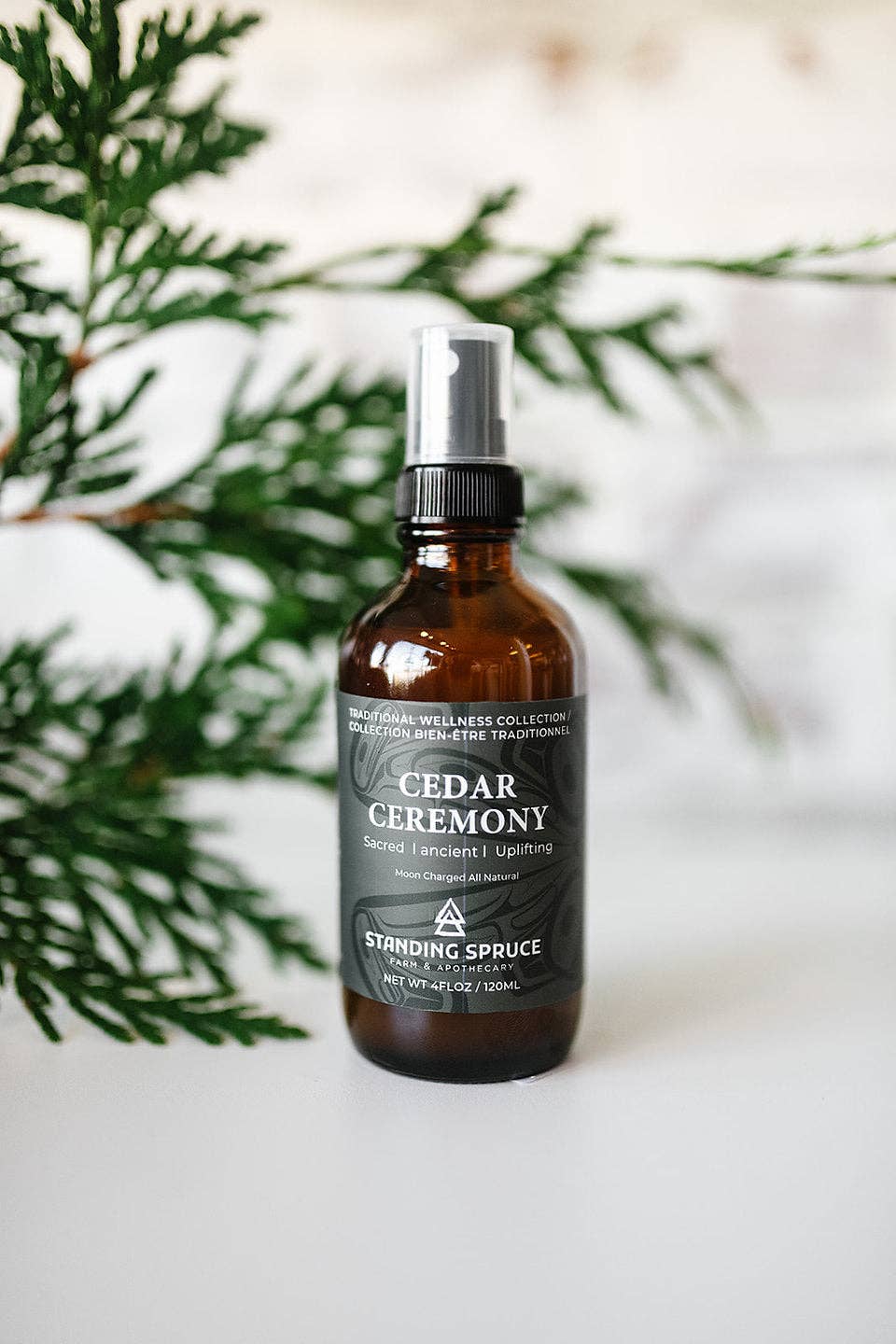 Make yourself acquainted with our highly coveted Cedar Ceremony All Natural Indigenous Made Smudge Spray, a product deeply rooted in history and tradition. Each bottle of this enchanting spray is carefully formulated by incorporating the essence of Lesley's authentic indigenous ceremony, using only locally sourced natural ingredients and hydrosols, not just essential oil and water.