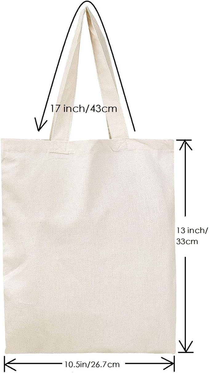 Quality Materials: these tote bags are made of canvas material with exquisite craftsmanship and solid stitches, making them safe and odorless, reliable and reusable, and not easy to tear, deform or break, allowing you to use them for a long time. The length of the handles is approx. 8.5 inches, making it easy to carry by hand or over the shoulder