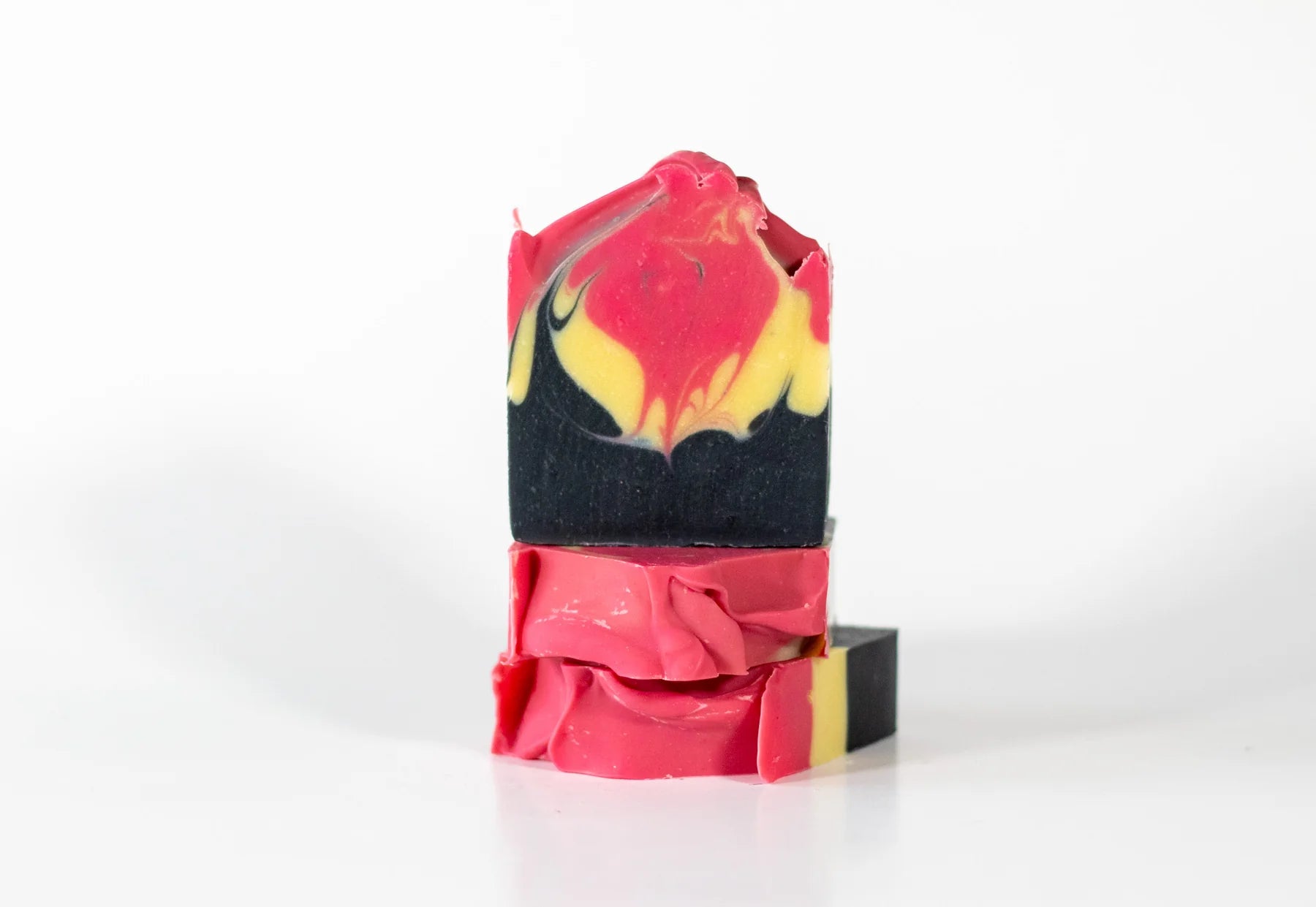 What's in it? Sodium Olivate (Olive) Oil, Sodium Cocoate (Coconut) Oil, Aqua (Water), Elaeis guineensis (Palm) Oil, Sodium Hydroxide, Prunus Amygdalus Dulcis (Sweet Almond) Oil, Sodium Castorate (Castor) Oil, Fragrance, Mica, Activated Charcoal