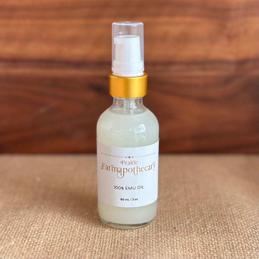 Historically used by the aborigines, emu oil is produced from the fat of an emu, a massive Australian bird. The Emu oil in Prairie Farmapothecary’s Elevated Emu Serum is sourced from an American Emu Association Certified farm. The Emus are free-range and raised in a natural environment, free from pesticides, herbicides, antibiotics, hormones or steroids. Once at the refinery, the emu fat is gently rendered, resulting in a superior, premium-quality oil. There are no harsh solvents or chemicals used in the refining procedure.