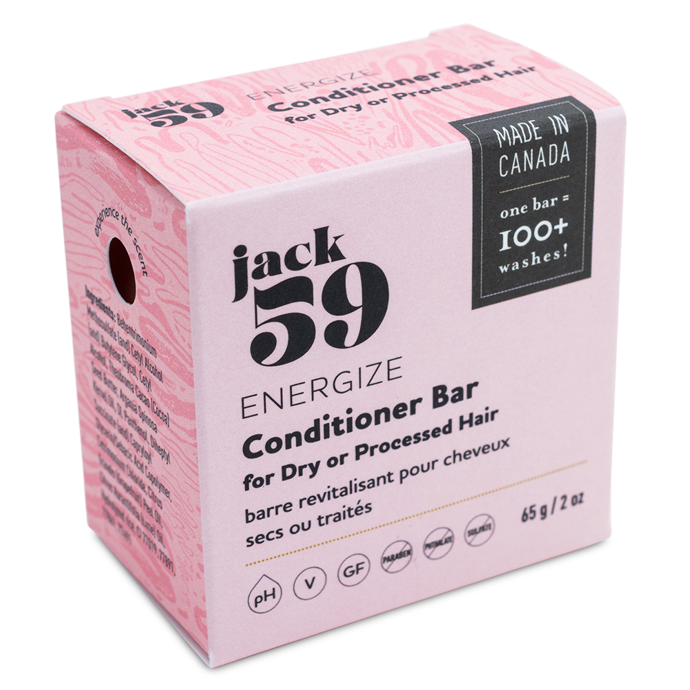 REVITALIZING BLEND with Pink Grapefruit, and Lime Essential Oils. For dry, damaged or processed hair. Our Energize conditioner bar is our most hydrating conditioner with a delicious combination of grapefruit and lime essential oils. Restore the luster and shine to dry, thick hair with the Energize conditioner bar. Increase hair strength, add radiance and shine, and soften with this perfect blend of proteins, nutrients, and oils. Vegan/Cruelty-Free/Plastic-Free/Sulfate-Free/Gluten-Free/Biodegradable.