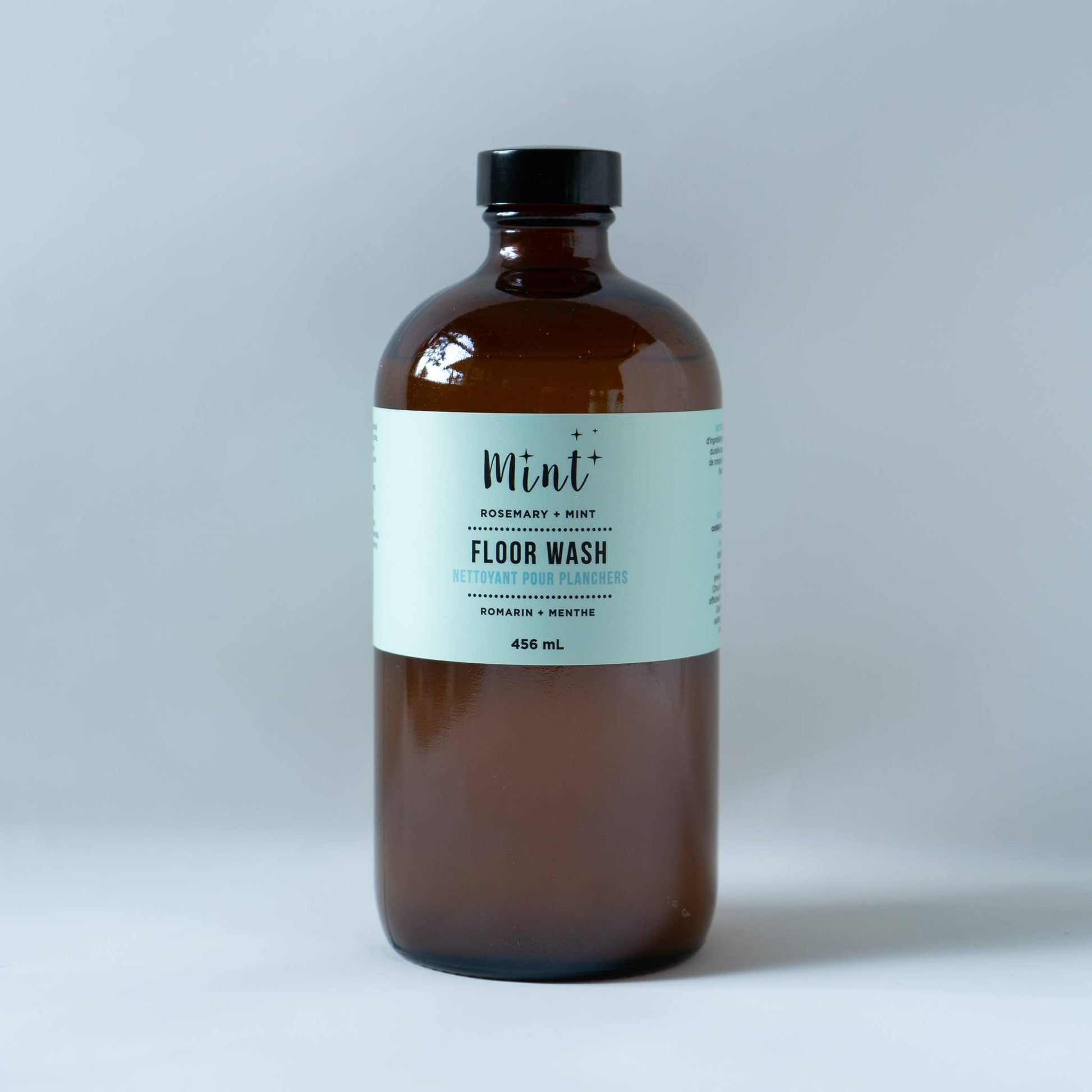 Mint Floor Wash is a concentrated formula that is tough on dirt and odors and leaves a lasting streak-free shine. Made with 100% all-natural plant-based ingredients that are safe to use on all floor types. Scented with pure organic essential oils of Rosemary, Mint, and Orange that will leave your entire room smelling fresh and clean. 456ml refillable glass bottle.