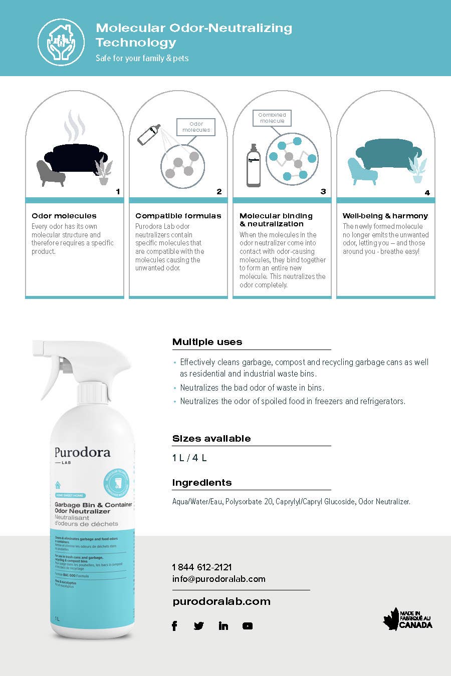 Cleans & eliminates garbage odors from all types of residential and industrial waste containers – even odors that have been around for years! Also gets rid of spoiled food smell in fridges and freezers. Permanently neutralizes odors on contact. Ready-to-use 2-in-1 all-purpose cleaner & odor neutralizer that’s gentle enough for frequent cleaning, but powerful enough to remove even the most stubborn odors. Leaves a fresh pine & eucalyptus scent. Biodegradable.