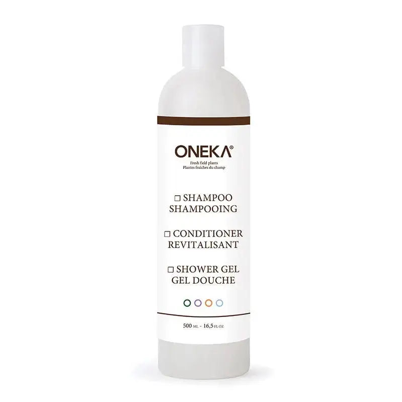 A refillable plastic bottle for your Oneka shampoo, conditioner, or shower gel. Refill with your favourite aroma. The generic label lets you pick the product and aroma. Comes with a dispenser cap. 500 ml format.