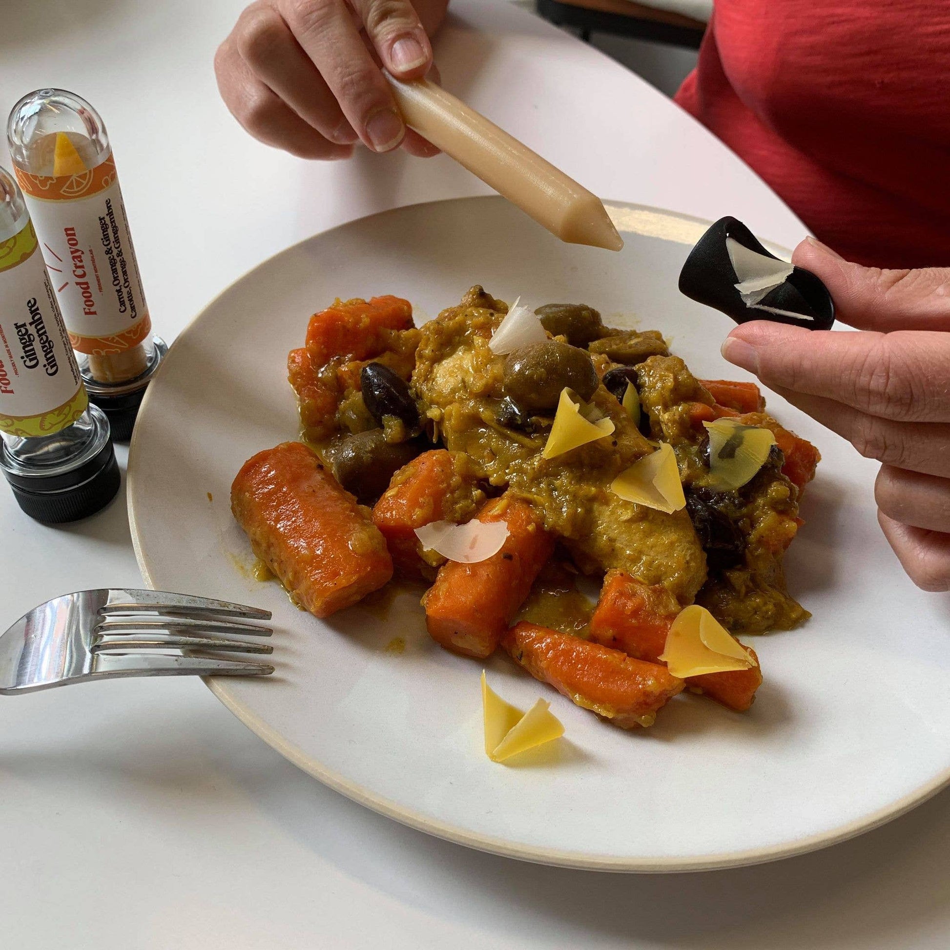 How to use : The Ginger Food Crayon tastes explosive ! So fresh and a little spicy, it adds a little fresh touch to your sushi and sashimi platter. It's also delicious on Chinese food (General Tao chicken, Chinese noodles), on white fish and tartar. Your carrot soups, smoothies and cocktails like Moscow Mule will me enhanced by the tasty flavour of the Ginger Crayon. How it works : Sharpen some shavings on your plates, over your desserts or drinks as you serve. How many shavings : 5 to 10 shavings per plates. 1 or 2 shavings per bite size serving or on a drink. Shelf life and preservation : Food Crayon lasts up to 12 months. Once open keep them in their tube in the fridge.