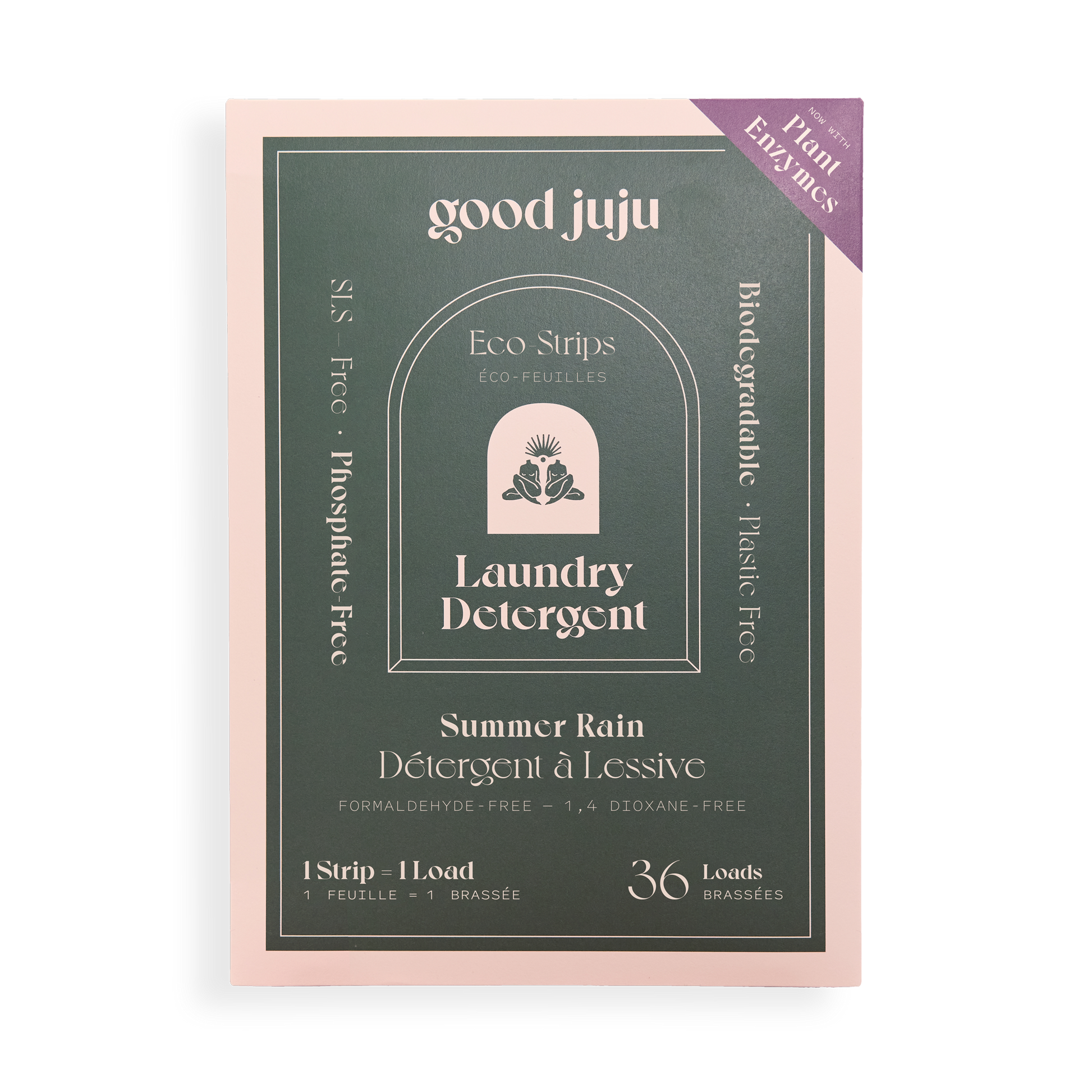 A cleaner, greener way to do laundry. Now with 2x bigger sheets, plant enzymes, and 36 loads per package. Our innovative laundry sheet formula is super-concentrated, containing no water and requiring no plastic bottle. Each 36-load envelope prevents one 1-litre plastic jug from entering the landfill, and results in a 94% reduction in transport-related greenhouse gas emissions, compared to liquid alternatives. //Pre-portioned sheets contain exactly the detergent needed for one load of laundry //Dissolves completely in hot or cold water //Works in all washing machines, including HE //Safe for hand-washing, and for use in septic systems //Summer Rain Scent