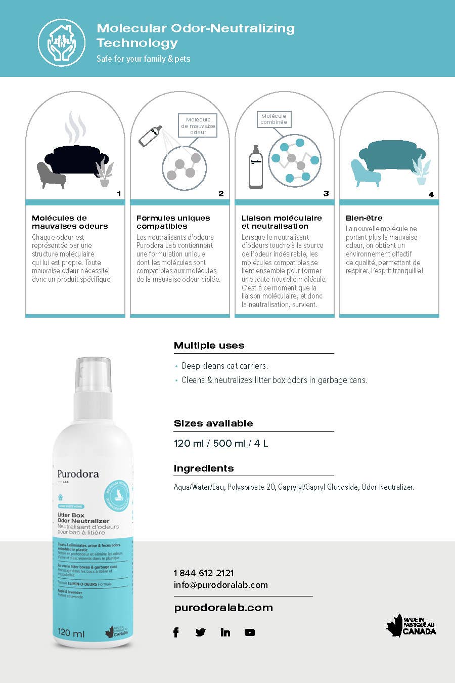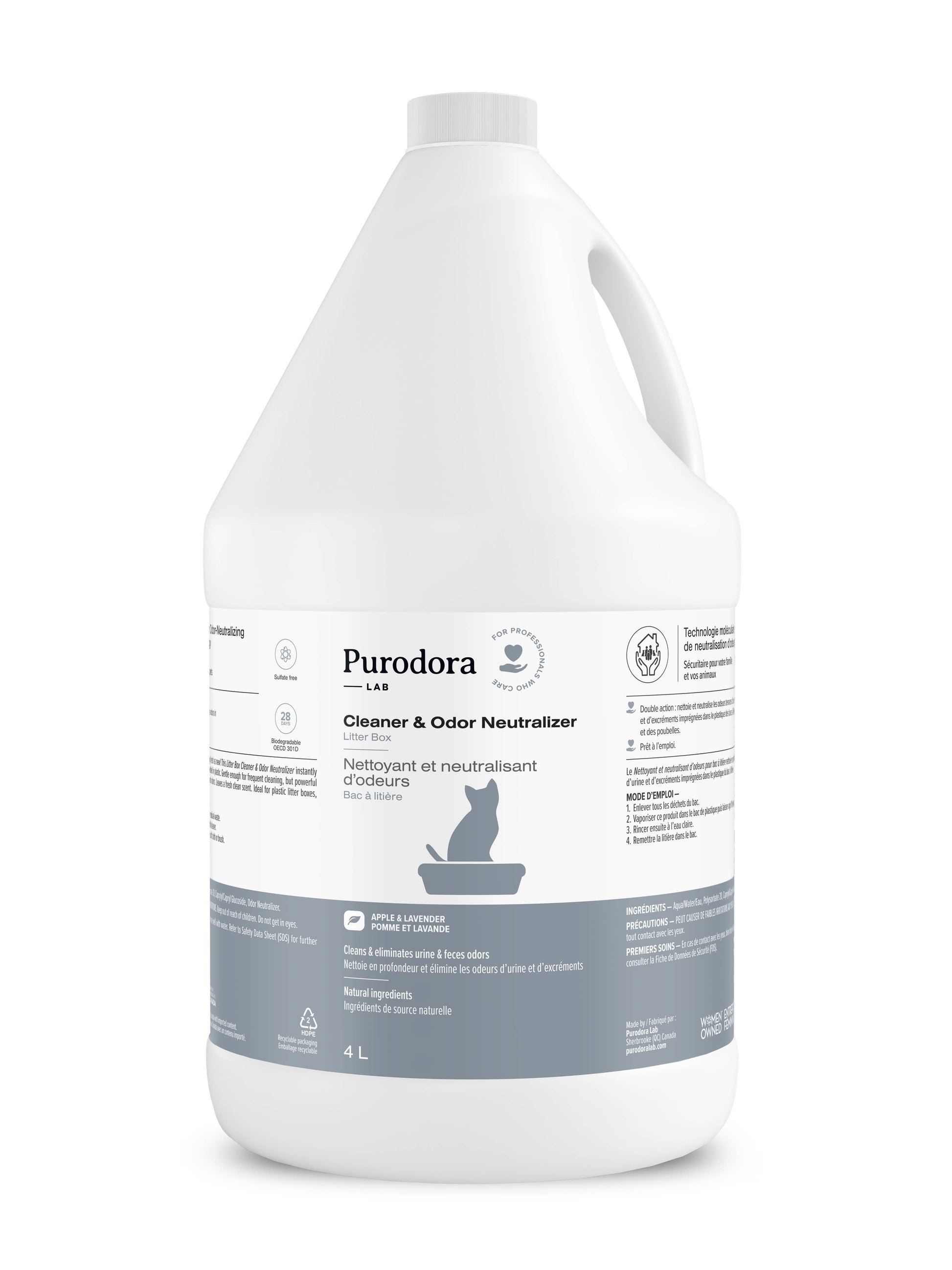 Cleans & eliminates urine and excrement odors in plastic litter boxes, diaper pails, garbage bins and more –even odors that have been around for years! Neutralizes odors on contact. 2-in-1 cleaner & odor neutralizer that’s gentle enough for frequent cleaning, but powerful enough to remove even the most stubborn dirt and odors. Leaves a clean apple & lavender scent. Biodegradable.