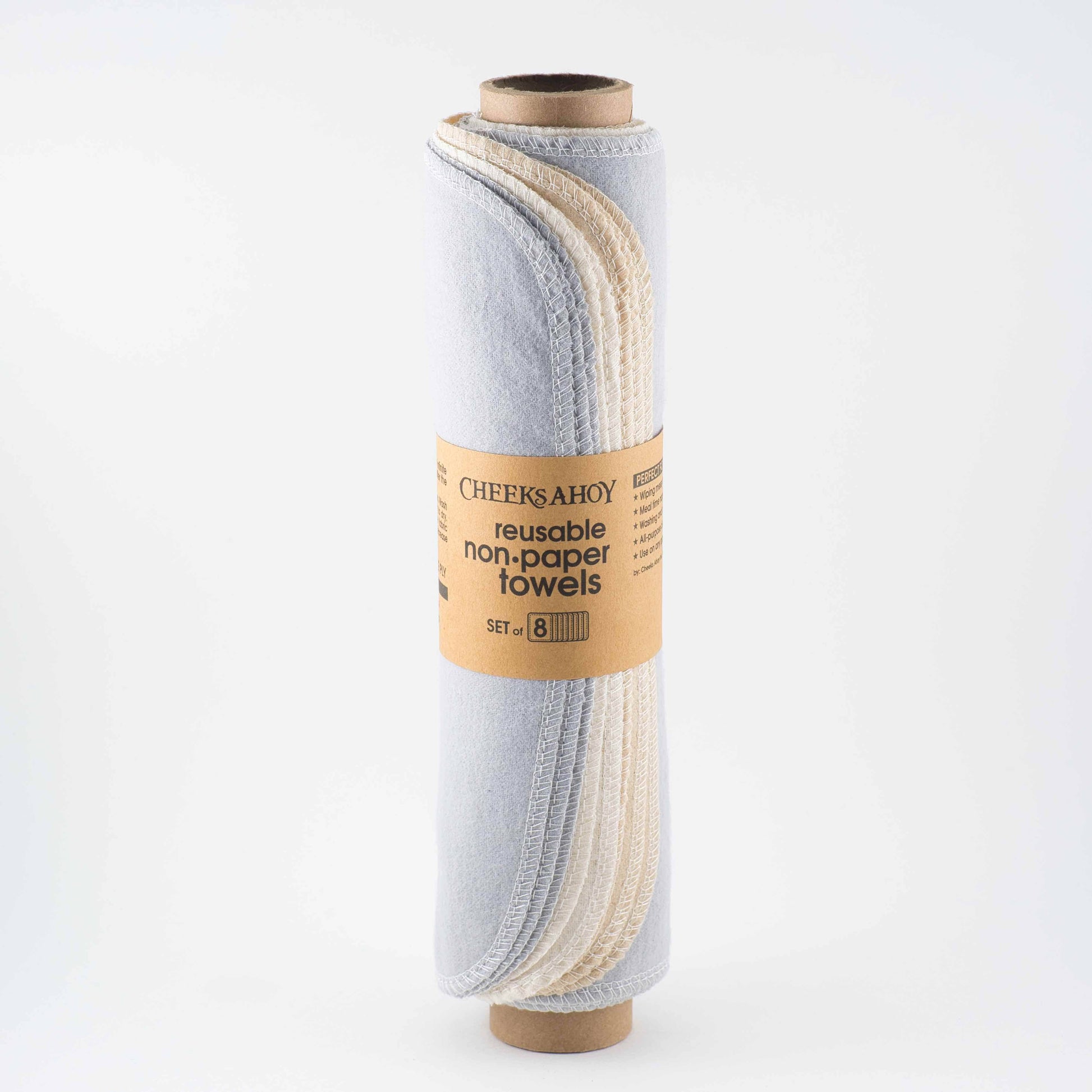 Eliminate the use of paper towels and napkins with this eco-friendly replacement! PERFECT FOR ★ wiping messy hands and faces after meals ★ spill clean-up ★ washing and drying dishes ★ mealtime napkins ★ lint-free cleaning and dusting Always keep a spare or two in your pocket to use as a handkerchief (that's right, we said it), or to have as an emergency wipe. Pre-rolled on a sturdy kraft paper tube, use with any paper towel dispenser. Each Non•Paper Towel is single ply and measures 12"x10". Made from 100% cotton.