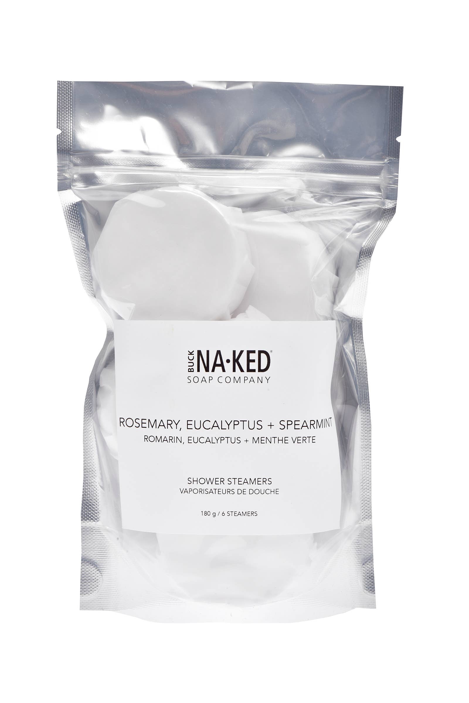 Shower steamers deliver an aromatherapeutic experience that transforms your shower routine into a lavish and restorative affair. Breathe in deeply to soak up the clarifying and effervescent blend of rosemary, eucalyptus and spearmint essential oils. Clear congestion or invigorate the mind, reduce stress and tension or boost mental activity, and clarity while relieving fatigue. Each shower steamer is now wrapped in black foil for recyclability You can shop confidently with Buck Naked knowing each Buck Naked product is: PETA Vegan + Cruelty Free Leaping Bunny Certified CertClean Certified