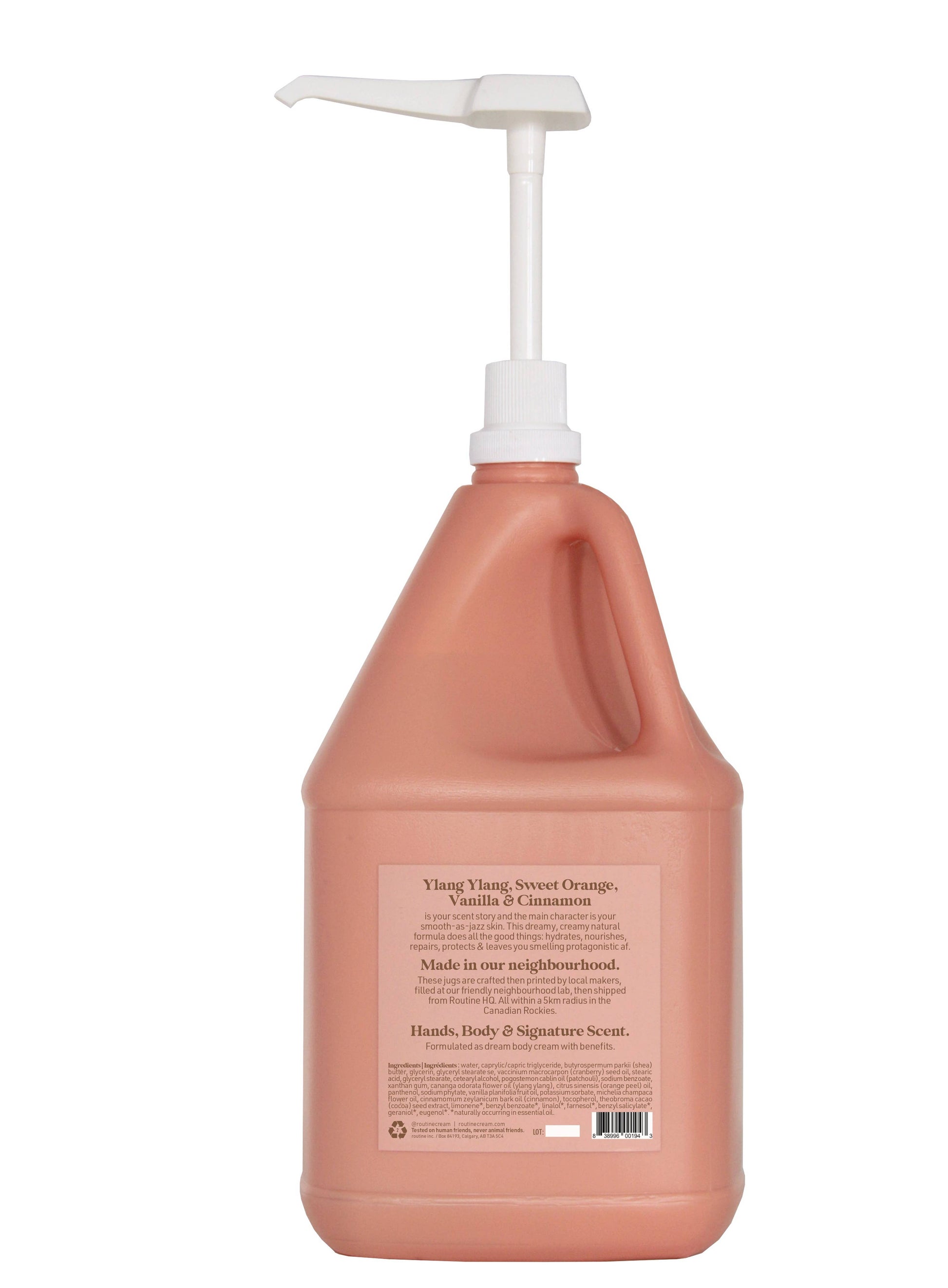 CREAM, PERFECTED. Texture, scent, and style - the best your skin has ever felt. This dreamy, creamy, botanic formula does all the good things: hydrates, repairs, protects, and leaves you smelling how you want to. SWEET, SPICY & DELIGHTFUL. Ylang Ylang, Sweet Orange, Vanilla & Cinnamon. BOTANICALS | NO SYNTHETIC INGREDIENTS | VEGAN | CLINICALLY TESTED This product is meant for designated refill/zero waste concept stores and does require approval prior to placing an order. If you do place an order, and approval has not previously been granted, a routine representative will follow up with you to confirm. If approval is not granted, you will be provided with a full refund prior to shipping.
