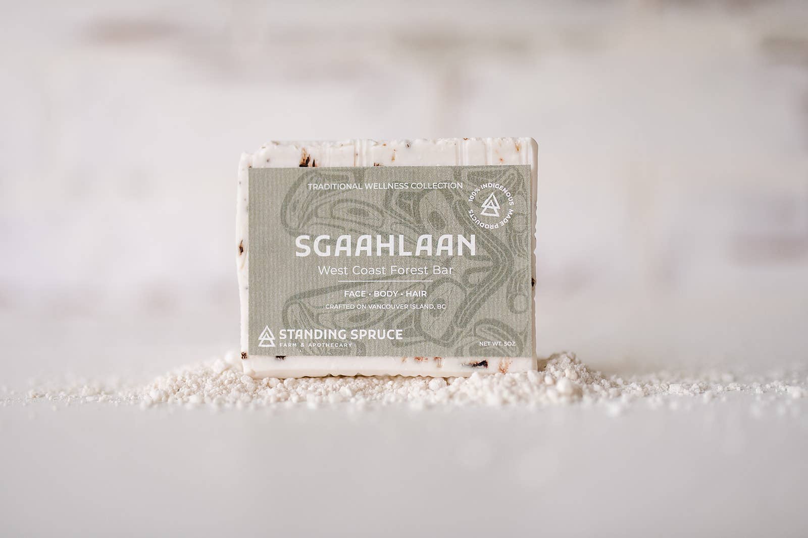 This rustic, yet luxurious bar is delicately scented with the oils of cedar and west coast rugged trees and citrus. Bright, invigorating, and moisturizing with farm tallows and fats which make for a longer lasting and harder bar.*like tree's these hand made soaps may vary in size and colour.*ingredients |coconut oil, distilled water, sodium bicarbonate, cedar leaves. Essential oils |cedar, fir, spruce, litsea cubeba.