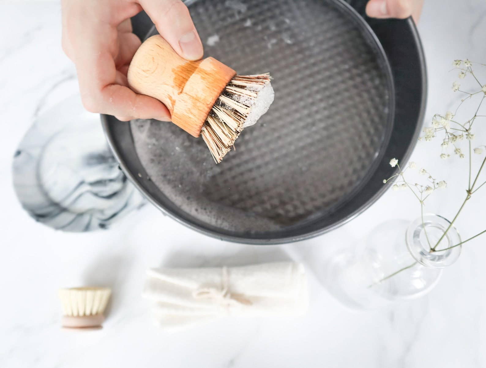 A sustainable scrubber to replace plastic or metal pot scrubbers, great for heavy-duty yet scratch-free cleaning like stuck-on food, heavy stains, burnt scraps, grease on cast iron pots. Each scrubber will come in unique bamboo patterns. Direction scrub pots, dishes, and other surfaces with dish soap as needed