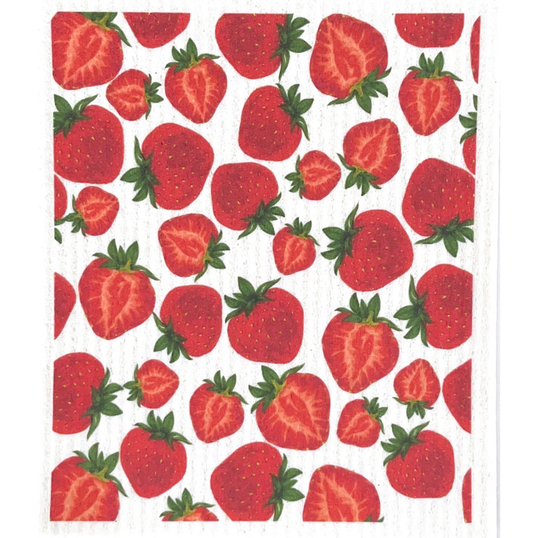 This brightly colored print design showcases a mix of juicy whole and sliced strawberries and is a perfect way to wipe up spills and messes in the kitchen! Each Good Kitchen ECO dishcloth is made from 70% cellulose and 30% cotton making it naturally anti-bacterial and 100% compostable.