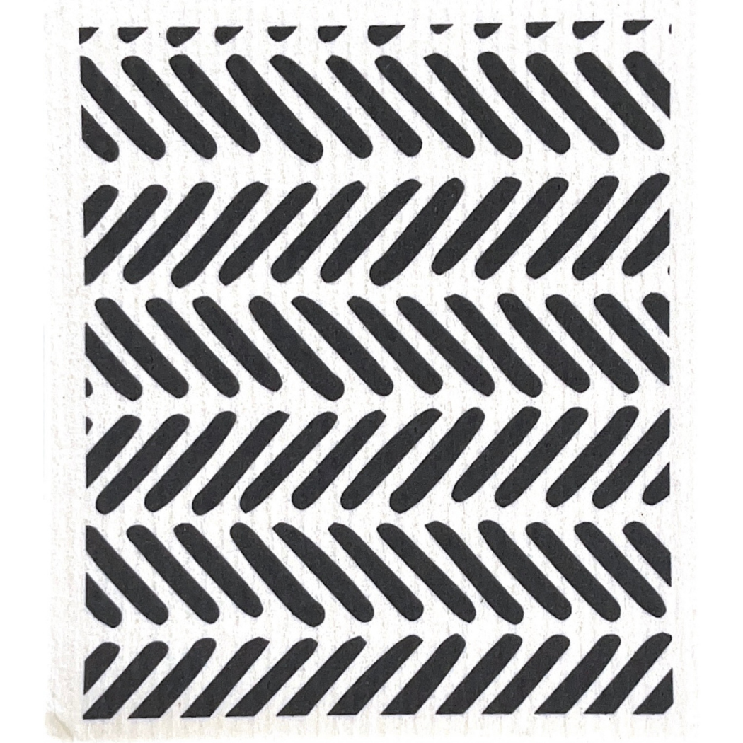 Horizontal slanted stripes black and white print graphic design. This eco dishcloth is a colorful way to wipe up spills and messes in the kitchen! Each Good Kitchen ECO dishcloth is made from 70% cellulose and 30% cotton making it naturally anti-bacterial and 100% compostable.