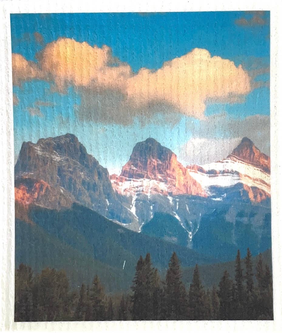 Landscape Three Sisters mountains in Canmore, Alberta  Canada photo design. This eco dishcloth is a colorful way to wipe up spills and messes in the kitchen! Each Good Kitchen ECO dishcloth is made from 70% cellulose and 30% cotton making it naturally anti-bacterial and 100% compostable.