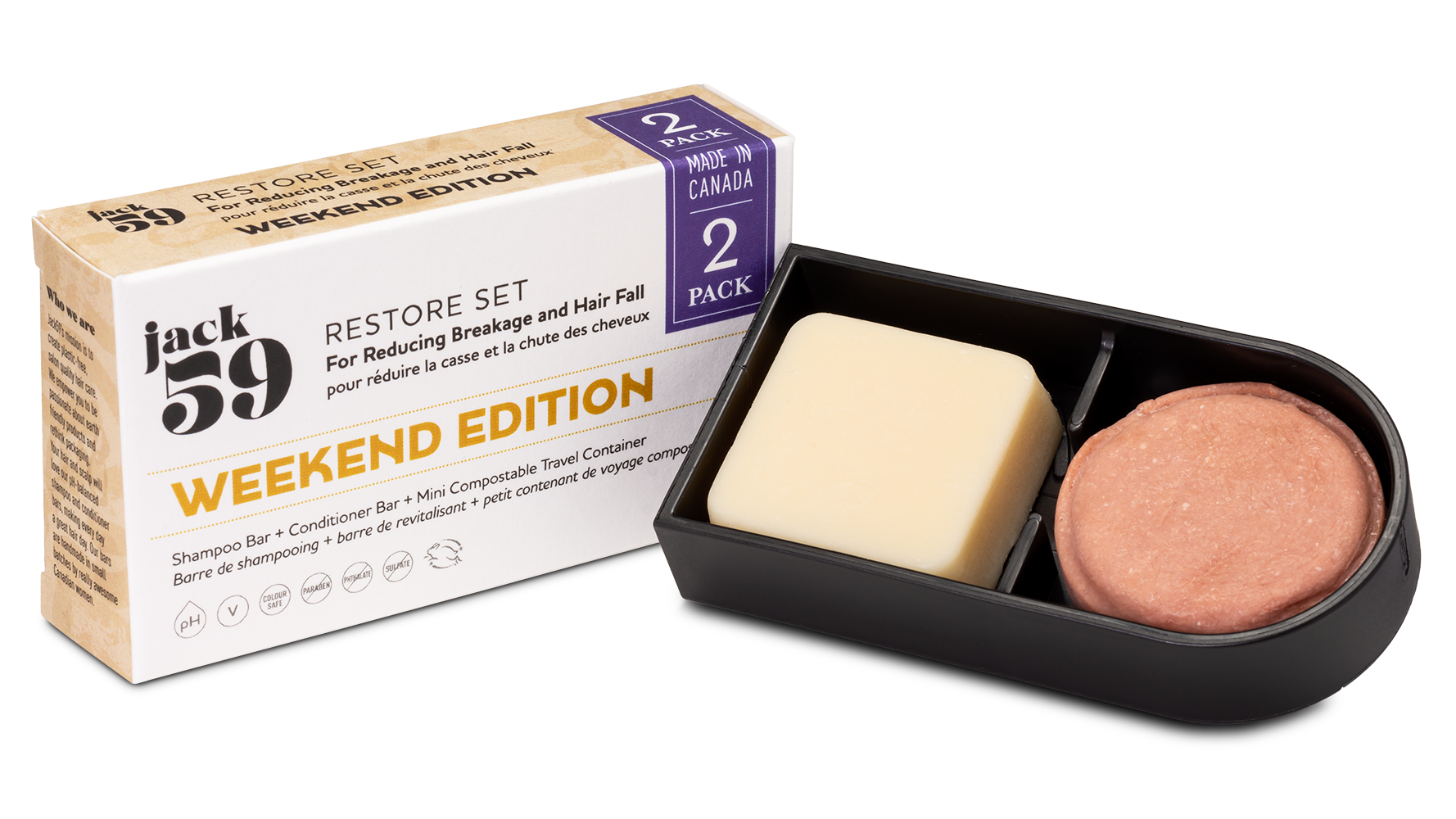 Introducing The Weekender Travel Buddy set! This convenient travel kit contains everything you need for a refreshing and eco-friendly shower on the go. We've packed in all the goodies you love from Jack59, ensuring a luxurious hair care experience wherever your adventures take you.